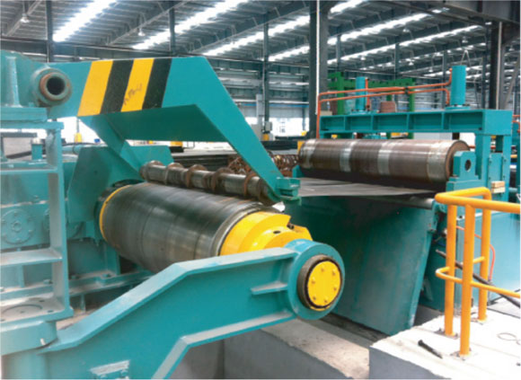 性能特點(diǎn): 該生產(chǎn)線是將一定寬的金屬卷料中厚板寬方向縱剪成多條所需寬度的帶材并進(jìn)行成品工件的卷取的成套設(shè)備。 由上料小車(chē)、開(kāi)卷機(jī)、壓引-牽引-粗校、過(guò)渡臺(tái)、對(duì)中裝置、縱剪主機(jī)、活套、阻尼預(yù)分料、收卷機(jī)、卸料小車(chē)、液壓-氣動(dòng)-電氣控制系統(tǒng)等組成。 通過(guò)更換與排列不同規(guī)格的刀片隔套,可縱剪成不同寬度成品工件。 可根據(jù)客戶的需要及生產(chǎn)線的工藝與配置實(shí)際需要,另外選配料頭剪、廢邊卷取裝置等裝置。 |