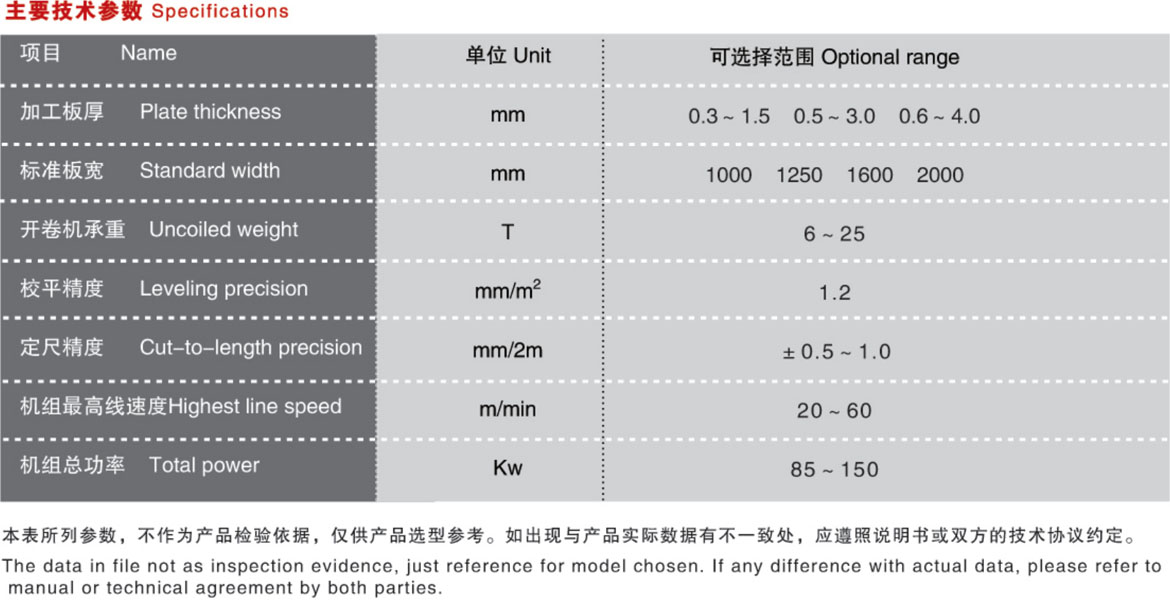 性能特點: 該生產(chǎn)線是將較薄金屬卷板整平、剪切成塊狀板材的專用設(shè)備。通常由上料小車、開卷機、引頭裝置、校平主機、活動過橋、導(dǎo)向糾偏裝置、定尺機構(gòu)、覆膜裝置、飛剪主機、輸送工作臺、氣動排料架、液壓升降垛料臺、運料滾道臺及液壓系統(tǒng)、電氣控制系統(tǒng)等組成,協(xié)同動作PLC控制。 本設(shè)備主要用來加工冷軋?zhí)间摼戆濉⒉讳P鋼卷板及有色金屬卷板等,可以根據(jù)客戶的需求和工件加工的需要,選用六重式、四重式或二重式校平主機。 根據(jù)客戶要求,校平可采用初、精兩級校平機校平;定長送剪可采用普通機械電器協(xié)同動作、數(shù)字變頻技術(shù)或交流伺服技術(shù);剪板機可配用普通機械、液壓機型,電磁離合器、氣動離合器傳遞動力的高速閘式剪板機,移動跟蹤的追剪以及回轉(zhuǎn)式飛剪機。配套相關(guān)成型機床可作更大范圍功能延伸。